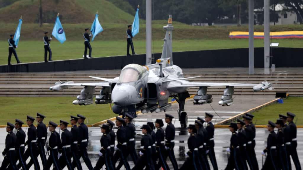 El presidente Gustavo Petro hizo oficial la adquisición de 17 aviones cazas de combate JAS 39 Gripen E/F, destinados a la Fuerza Aeroespacial Colombiana (FAC), durante una ceremonia por los 106 años de las Fuerzas Armadas. El acto se llevó a cabo en la Escuela Militar de Aviación (Emavi) de la base aérea Marco Fidel Suárez, en Cali, este 14 de noviembre.El presidente Gustavo Petro hizo oficial adquisición de 17 aviones de combate Gripen. Foto:Juan Pablo Rueda / EL TIEMPOEl contrato LEA TAMBIÉN “Este momento es histórico para los colombianos y colombianas. Se está firmando el contrato con 16,5 billones de pesos entre el Ministerio de Defensa y la empresa sueca Saab, con la más alta tecnología que fortalecerá la seguridad y la defensa del país”, dijo Petro.La adquisición de 17 aviones cazas de combate JAS 39 Gripen E/F. Foto:Fuerza Aeroespacial Colombiana” Queda anunciado y espero que represente una innovación absoluta de una nueva unidad en el desarrollo de la fuerza de la democracia de los colombianos”, sostuvo el jefe de Estado.Los primeros 100.000 millones de pesos serán desembolsados en 2026, año en el que también comenzará la ejecución presupuestal para el paquete completo de aeronaves. LEA TAMBIÉN Entrega gradual entre 2027 y 2032El cronograma de entrega proyecta que los Gripen llegarán gradualmente entre 2027 y 2032, reemplazando la flota de aviones Kfir actualmente en operación.No obstante, el presidente Petro espera que el primer avión aterrice en Colombia antes de finalizar su periodo de gobierno.El mandatario de los colombianos señaló que con esta firma se fortalecen lazos de amistad, confianza y cooperación. “Este acuerdo simboliza mucho más que una adquisición de capacidades estratégicas que representan una asociación entre dos naciones que creen en la paz, en el progreso y en la defensa de la vida para el futuro de Colombia y el reino de Suecia. Más allá de la defensa de la seguridad, este acuerdo también tendrá un impacto social”, precisó el presidente.El contrato de los nuevos aviones Gripen. Foto:Archivo ParticularPetro también se refirió a proyectos sociales. “Colombia fortalecerá su desarrollo industrial en panes solares para los más vulnerables, agua para la Guajira y salud de alta tecnología para los más necesitados. Este avance importante renueva nuestra voluntad de seguir construyendo juntos un camino de cooperación, respeto y desarrollo compartido, fieles a los valores que han guiado nuestra relación durante más de un siglo inédito. Que las próximas generaciones vivan el futuro que hoy nos atrevemos a construir”, dijo el presidente de la República. El ministro de Defensa, Pedro Sánchez, explicó que para asegurar la sostenibilidad operativa, el acuerdo incluyó un completo soporte logístico para 3.000 horas de vuelo, garantizando el alistamiento de las aeronaves desde el inicio de su operación, proyectado para 2028, hasta el año 2032. De igual manera, dijo que se adquirió un stock inicial de componentes y repuestos que permitirá cubrir eventuales contingencias y mantener la máxima disponibilidad, mientras se hace efectiva la garantía del elemento; es importante resaltar que los costos para soportar la operación de hora de vuelo de los aviones Gripen son inferiores a los de la actual flota KFIR.Durante los primeros tres años, contados a partir de la recepción de la primera aeronave, personal técnico y operativo de la empresa acompañará la fase de transición a la nueva flota, garantizando la adecuada incorporación del sistema al servicio y la consolidación de las capacidades nacionales. El contrato también prevé la dotación de todas las herramientas y equipos de apoyo en tierra necesarios para la operación de las aeronaves en su base principal y durante sus despliegues, extendiendo las capacidades de la FAC en todo el territorio nacional. Aseguró que este es el resultado de un proceso serio, transparente, colaborativo y pensando en la economía de los colombianos, ya que la oferta seleccionada, es alrededor del 20 % más económica que las otras ofertas.Para el ministro y la FAC, firmar este contrato es asegurar nuestra soberanía, fortalecer la seguridad y proteger la vida. Sánchez reiteró que se cuenta con el respaldo del Gobierno del Reino de Suecia, que reafirma un compromiso de cooperación con Colombia en el marco de una relación estratégica, transparente y de más de 150 años de historia. LEA TAMBIÉN El presidente Gustavo Petro, en ceremonia en la Emavi por 106 años de las Fuerzas Armadas. Foto:Juan Pablo Rueda / EL TIEMPO”La compra de estos aviones nos permitirá desarrollar en Colombia misma la producción de paneles solares. Esperamos la más alta tecnología el panel solar flexible que permita en la costa Caribe y en la costa Pacífica las construcciones de los más pobres”, expresó Petro durante la ceremonia, a la cual no asistieron la gobernadora del Valle del Cauca, Dilian Francisca Toro, ni el alcalde de Cali, Alejandro Eder. Es posible que la ausencia de ambos mandatarios regionales haya obedecido al sentimiento de frustración y al retraso en el inicio de obras para el tren de cercanías del Valle que el departamento ha venido clamando al Gobierno Nacional, luego de que el presidente Petro no firmó el convenio prometido de cofinanciación del 70 % de los recursos de esta iniciativa.Constelación satelital para monitoreo ambientalDe acuerdo con la Fuerza Aeroespacial Colombiana, se adelanta la creación del FACSAT-III, constelación satelital de producción nacional y junto al FACSAT-II, sigue aportando información clave para el monitoreo ambiental.De igual manera, “se continúa su participación en las expediciones antárticas, completando siete misiones al continente blanco, que suman 276 horas de vuelo, 23 proyectos de investigación, 47 investigadores y 19 cruces polares, fortaleciendo el liderazgo de Colombia en investigación científica. Para 