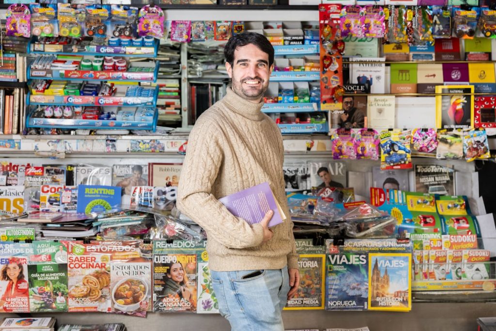 Miguel Sanz (Burgos, 33 años) se pasa 12 horas al día en la calle, al pie de su quiosco. La gente le saluda todo el rato y Sanz conoce los nombres, las caras, detalles de sus vidas y, por supuesto, su periódico de cabecera. Algunos vienen a devolver dinero fiado, Sanz ni se acuerda. Vida de barrio en peligro de extinción, como los quioscos. Pese a las turbulencias del sector, este, en Ortega y Gasset 45, cerca de la plaza del Marqués de Salamanca, Madrid, parece navegar bien.Sanz cogió el traspaso hace 10 años, cuando era estudiante de Ciencias Políticas e Historia. “Me apetecía ponerme a trabajar”, dice. Desde hace dos su quiosco se diferencia por organizar firmas con autores como Andrés Trapiello, David Uclés, Manuela Carmena, Aida Dos Santos, Esperanza Aguirre, Benjamín G. Rosado, Vicente G. Olaya, Juan Manuel de Prada, Agatha Ruiz de la Prada, etc. El día 16 —está Sanz muy contento— viene Manuel Vicent: “Es un autor muy querido”. Más informaciónPregunta. ¿Hay que estar un poco loco para meterse en un quiosco?Respuesta. Un poco… Han ido menguando en los últimos años, pero yo siempre he tenido vocación por la palabra escrita, los periódicos, las revistas y siempre vi esperanza. Si no, no lo habría cogido. ¡Muy buenas Javier! [saluda a un cliente, abogado, que compra EL PAÍS y dice “que sepas que tenemos un quiosquero estupendo”]P. Este quiosco es muy frondoso. R. Fundamentalmente he apostado por los libros, a través de las firmas con autores. A los lectores les gusta tener la dedicatoria, pero también pretendo que se generan conversaciones. Me gusta traer a gente que escribe en los periódicos para que haya sinergias entre lectores de prensa y de libros. También a autores jóvenes, que no tengan tanta proyección. P. Tiene muchas otras cosas: paraguas, juguetes, caramelos, ¡hasta bolsos!R. Los cromos, vendo muchos cromos, sobre todo de fútbol. Cuentos para niños… Los paraguas se venden bastante bien los días de lluvia en los que, precisamente, tengo que retirar los libros. Hace unos años con periódicos y revistas se vivía holgadísimamente, hoy hay que diversificar. ¡Muy buenas! [saluda a dos clientas que aparecen].P. Ahora están apareciendo unos quioscos muy modernos, con café cuqui, revistas de diseño muy exclusivas, muy poca prensa…R. Son opciones muy respetables. Algunos del centro solo venden souvenirs, cada uno tiene su enfoque: tenemos que pagar un canon anual al Ayuntamiento, y estamos intentando, mediante la asociación, que nos exoneren, como en pandemia: la cultura necesita ayuda. Y yo he apostado por lo cultural, al menos en el 80% de los productos. “Se trata de que haya interacción social, de dar vida al barrio, que sea un punto de encuentro”, dice Miguel Sanz, retratado el pasado 28 de octubre. MOEH ATITARP. ¿Con quién empezó las firmas?R. Empecé con un amigo, Francisco Cánovas, presidente de la sección de Ciencias Históricas del Ateneo de Madrid, biógrafo de Ramón y Cajal, de Chaves Nogales o de Galdós. [“¡Muy buenas, Elisa!”, saluda a otra clienta]. Salió muy bien. Juan Manuel de Prada firmó mucho, 100 libros en dos horas, también porque la gente se llevaba los dos tomos de su novela. David Uclés fue el que más firmó en solo una hora, unos 70. Hay autores que me dicen que firman más que en ferias y librerías. Este es un barrio culto, ¿verdad Isabel? [le dice a una clienta, que asiente y se ríe].P. ¿Los libreros le tienen manía? R. Qué va, tenemos buena relación. Los de la librería Pérgamo, que está aquí cerca, alguna vez me han ayudado con ejemplares. El mosqueo general es con la venta de libros en Amazon. Me alegro de que varios clientes que compraban en Amazon ahora compren aquí. Comprar un libro no solo va de hacer un clic, sino de hablar y generar confianza.P. Qué bien.R. Se trata de que haya interacción social, de dar vida al barrio, que sea un punto de encuentro. [“Está fenomenal para dar vida”, dice una nueva clienta, que empuja a una mujer en silla de ruedas: siempre se lleva revistas de historia]. Los domingos por la mañana los otros comercios están cerrados, hay menos prisas y obligaciones, y aquí tenemos las firmas. P. ¿Qué papel tiene el quiosquero en el barrio?R. Hay quien me cuenta cosas personales, porque saben que no van a salir de aquí. También cumplimos una función señalizadora, dando direcciones de tal calle, de tal médico. Se forma una red de comunidad vecinal, hay quien pregunta si ha pasado otro amigo o qué tal está. Un punto de referencia: la gente se encuentra y nos quedamos de charla. P. La lectura en papel disminuye y veo que los que se paran no son precisamente querubines. ¿Le preocupa?R. Yo creo que los periódicos en papel nunca van a morir. Es el formato más idóneo para leer. En el digital se dedica muchos menos tiempo a la lectura reposada. Los buenos reportajes, buenos artículos, buenas informaciones siempre van a ser demandas por el público, en papel. Igual soy demasiado optimista. P. Esperemos que tenga razón.R. Internet está para quedarse, pero creo que esta burbuja de estar tantas horas frente a la pantalla se va a rebajar. El libro el papel se ha mantenido.P. Cuando se publique está entrevista será usted parte de la mercancía que vende. ¿Tratará de colocar más ejemplares?R. Modestamente, espero vender 200 o 300 [ríe]. Paso muchas horas en la calle y acabo conociendo mucha gente, espero que se interese.P. Si vende tanto tendremos que entrevistarle más a menudo. R. ¡Cuando queráis! Yo es que soy forofo de los periódicos…
